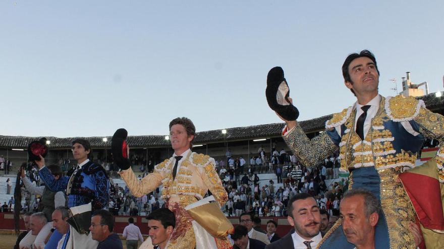 FICHA. Casi media entrada en tarde templada. Novillos mansos. Los novilleros le echaron arrojo, ganas de agradar y oficio. Pedro Luis: estocada entera (oreja); entera (saludo desde el tercio tras aviso). Julio Alguiar: pinchazo y baja (silencio); pinchazo y entera (saludo). Joaquín Caro: pinchazo y delantera (silencio); metisaca, atravesada y descabello (salió a saludar por su cuenta).